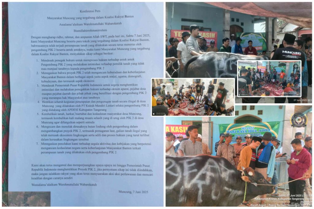 TANGERANG, JERITANRAKYAT.ID – Masyarakat Desa Muncung, Kecamatan Kronjo, Kabupaten Tangerang, yang tergabung dalam Koalisi Rakyat Banten, menyampaikan pernyataan sikap resmi dalam sebuah konferensi pers sebagai bentuk penolakan terhadap proyek pengembangan wilayah yang dikenal sebagai PIK 2 di kawasan Pantai Utara (Pantura) Banten. Sabtu (7/6/2025)