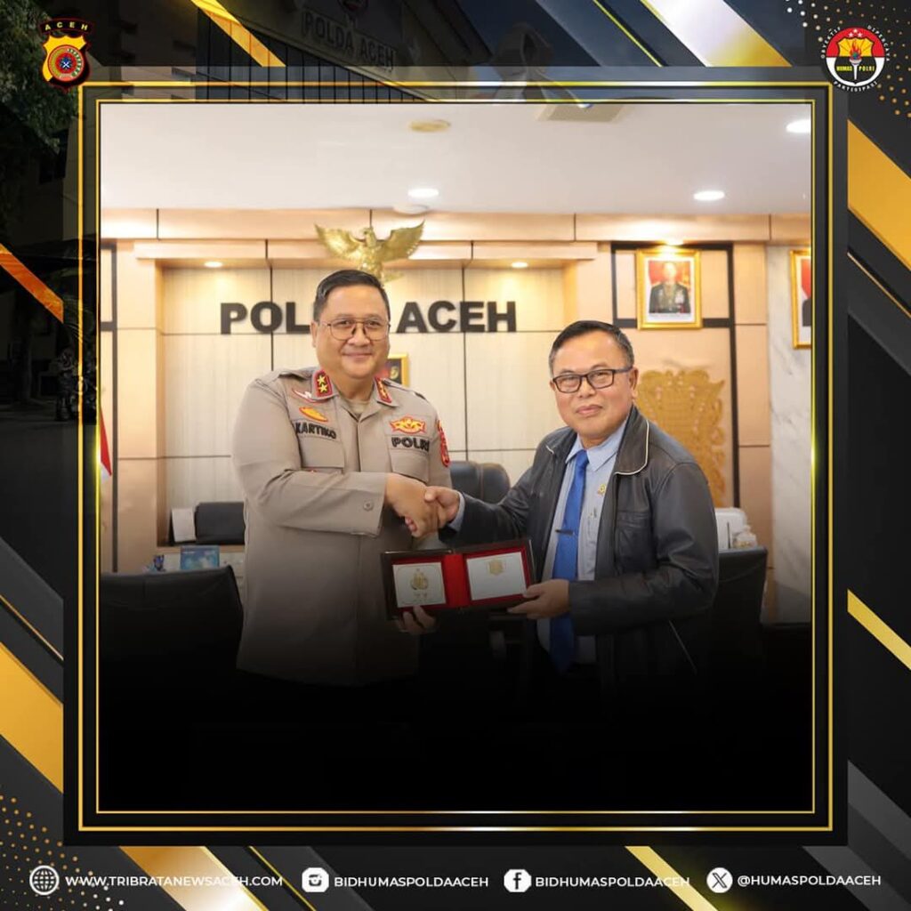 Kapolda Aceh Irjen Pol. Achmad Kartiko, S. I. K., M. H, menyambut kedatangan Ketua Pengadilan Tinggi Banda Aceh Nursyam, S. H., M. Hum, di ruang kerjanya, Gedung Satya Haprabu, Lantai 2 Mapolda Aceh, Rabu, 22 Januari 2025.