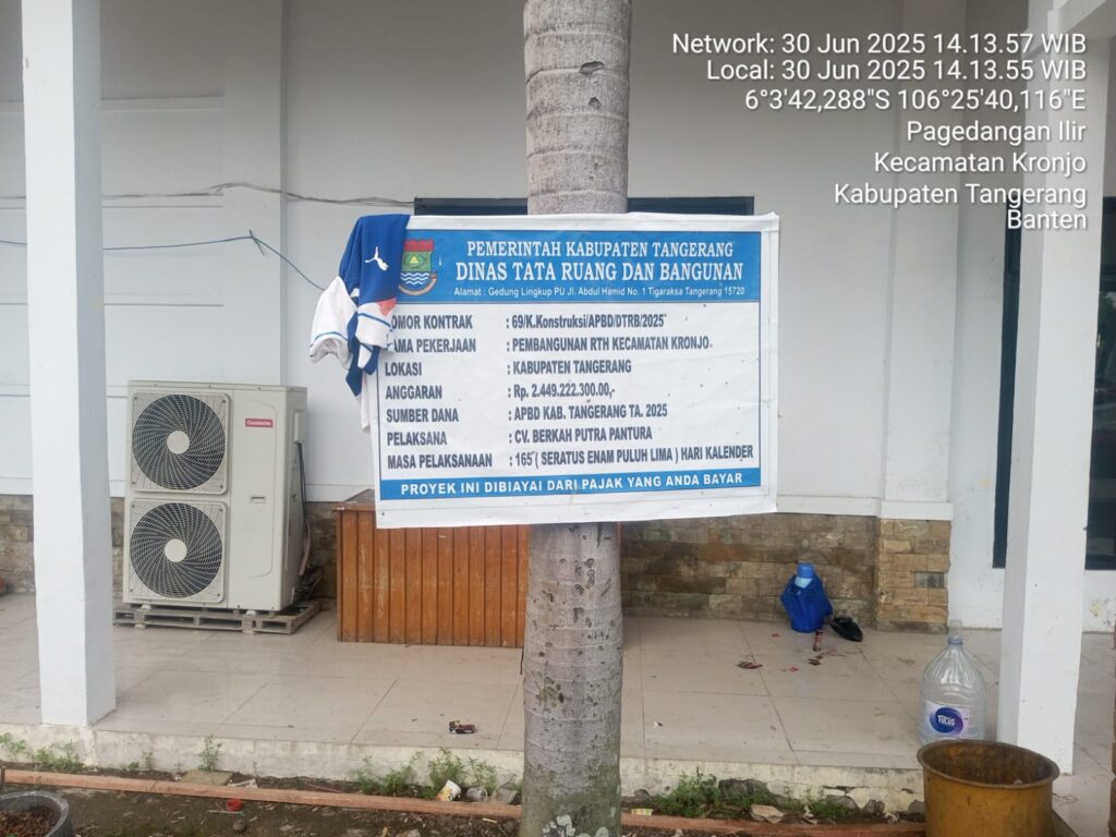 TANGERANG, JERITAN RAKYAT – Alih-alih menjadi ruang hijau yang asri, proyek pembangunan RTH (Ruang Terbuka Hijau) Kecamatan Kronjo justru meninggalkan aroma tak sedap. Proyek yang bersumber dari APBD Kabupaten Tangerang Tahun Anggaran 2025 sebesar Rp2.449.222.300, dan dilaksanakan oleh CV. Berkah Putra Pantura, diduga dikerjakan secara serampangan, tidak profesional, dan berpotensi menyimpang dari aturan pengadaan barang dan jasa pemerintah. Senin (30/06/25).